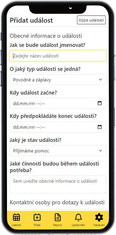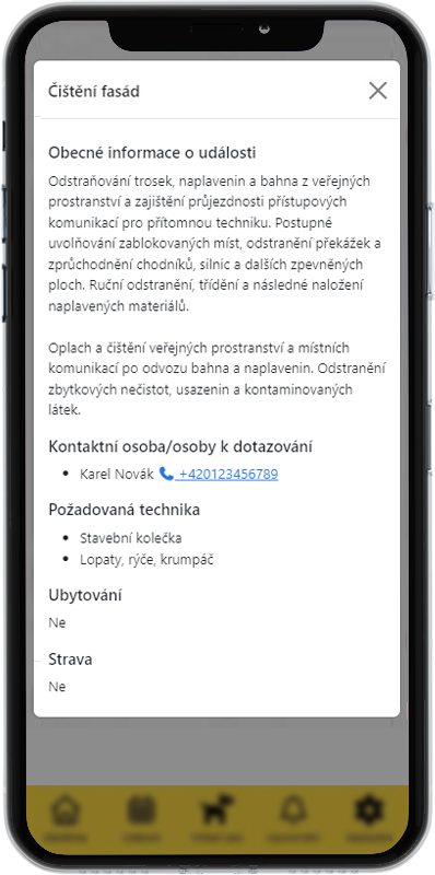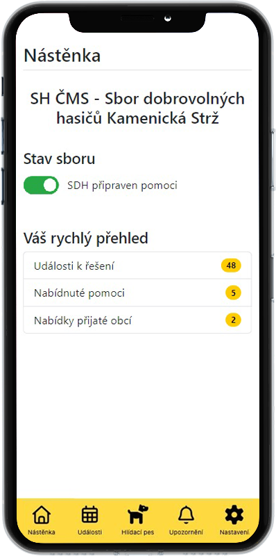 Aplikace pro rychlé zprostředkování a řízení pomoci od sborů dobrovolných hasičů obcím při obnovovacích pracích po mimořádných událostech.
